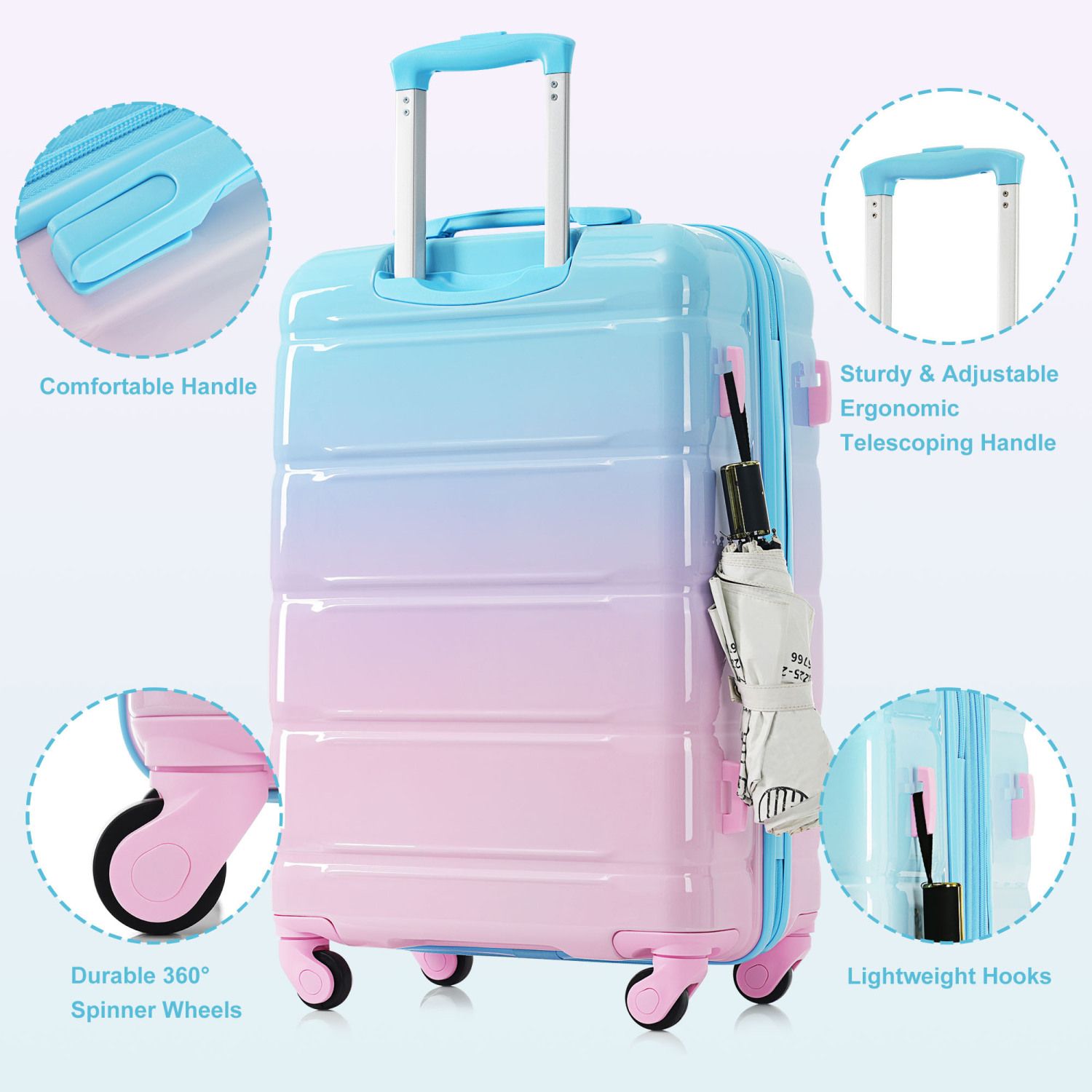 Luggage Set of 3, 20-inch with USB Port, Airline Certified Carry-on Luggage , ABS+PC Hard Shell Luggage with Spinner Wheels, light blue and pink Luggage Set of 3, 20-inch with USB Port, Airline Certified Carry-on Luggage , ABS+PC Hard Shell Luggage with Spinner Wheels, light blue and pink Luggage Set of 3, 20-inch with USB Port, Airline Certified Carry-on Luggage , ABS+PC Hard Shell Luggage with Spinner Wheels, light blue and pink