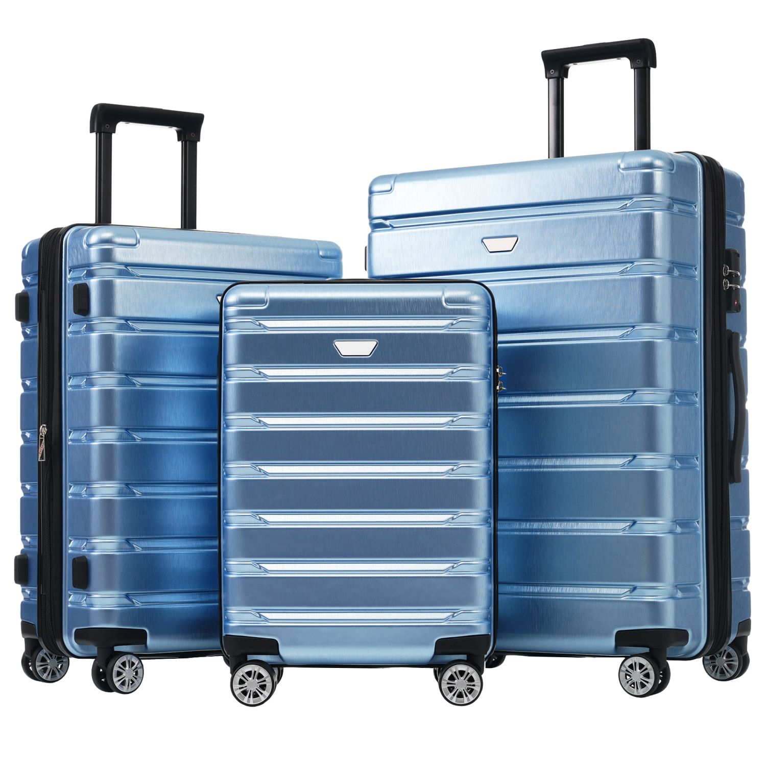 Save Space: The suitcases in 3 sizes can be nested inside each other to save storage space. 20 inch: 13.8 x 8.9 x 21.3", weight: 5.95lb. 24 inch: 17.3 x 10 x 25.7", weight: 8.16lb. 28 inch: 19.5 x 11.3 x 29.4", weight: 9.7lb.