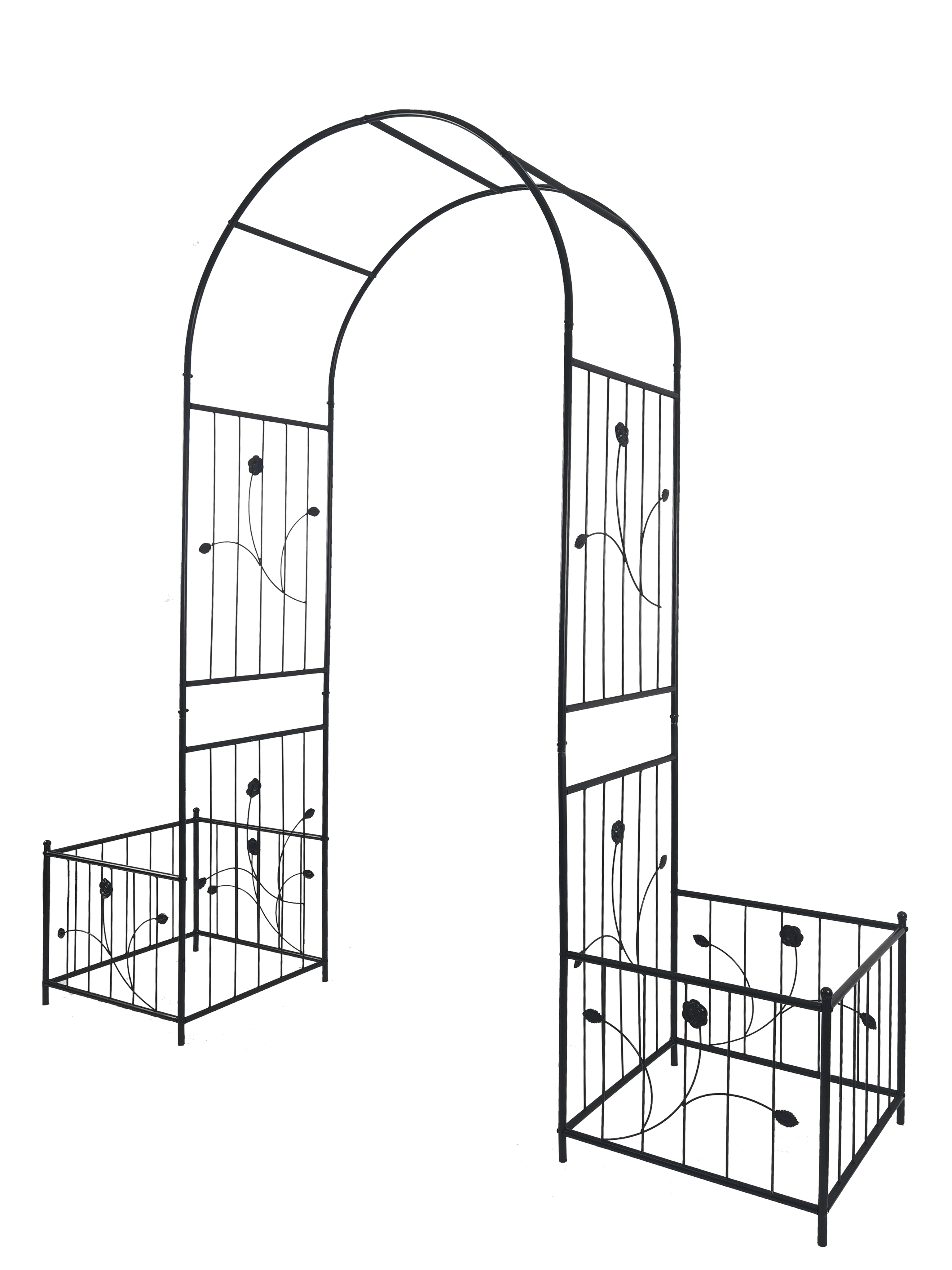 Metal Garden Arch with two plant stands 79.5'' Wide x 86.6'' High Climbing Plants Support Rose Arch Outdoor Black Metal Garden Arch with two plant stands 79.5'' Wide x 86.6'' High Climbing Plants Support Rose Arch Outdoor Black Metal Garden Arch with two plant stands 79.5'' Wide x 86.6'' High Climbing Plants Support Rose Arch Outdoor Black