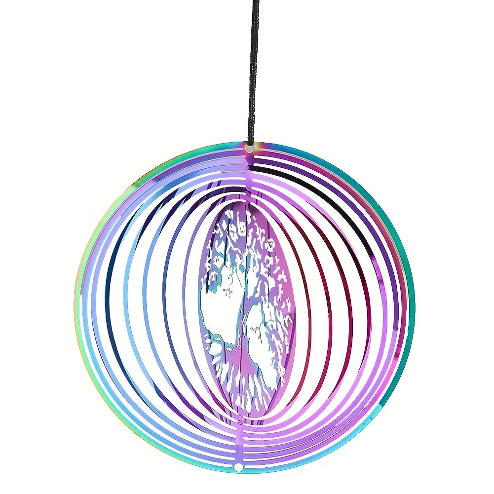 1pc Colorful Tree Of Life Wind Chime Spinner Laser Cut 3D Stainless Steel Sequins Garden Reflective Pendant Bird Scare Repeller, 3.94inch
